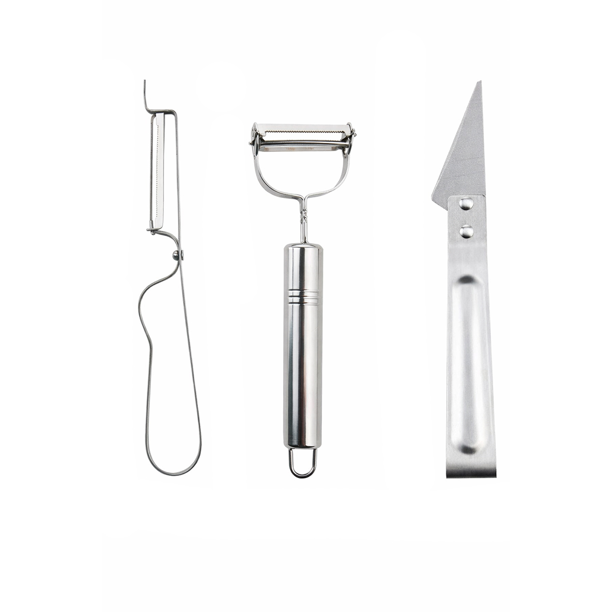 Cada descascador possui uma função específica, permitindo que você descasque, fatie e rale legumes e frutas com o mínimo de esforço e o máximo de aproveitamento.