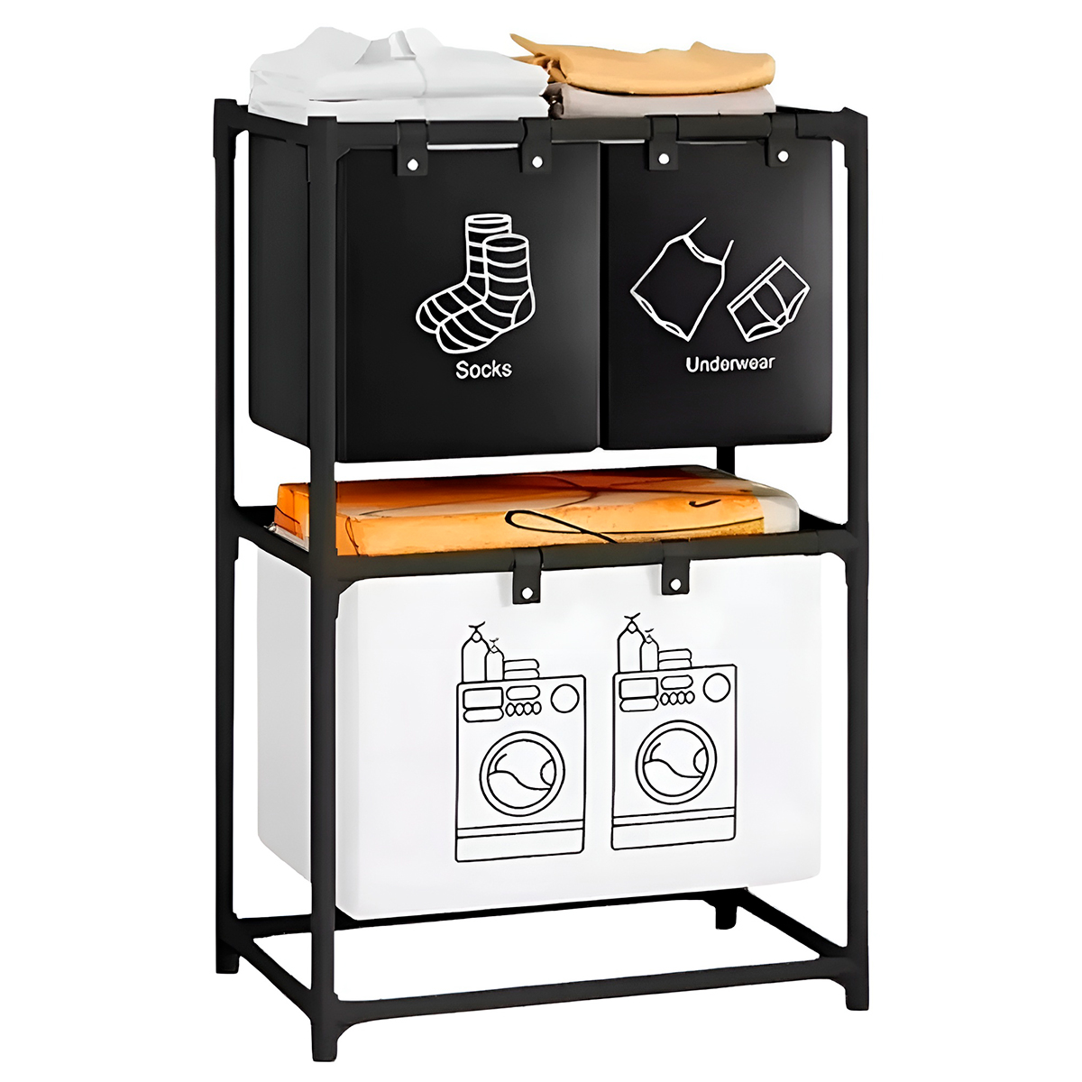 - Este organizador foi projetado para maximizar o espaço vertical, sendo perfeito para lavanderias, quartos, banheiros ou closets pequenos.