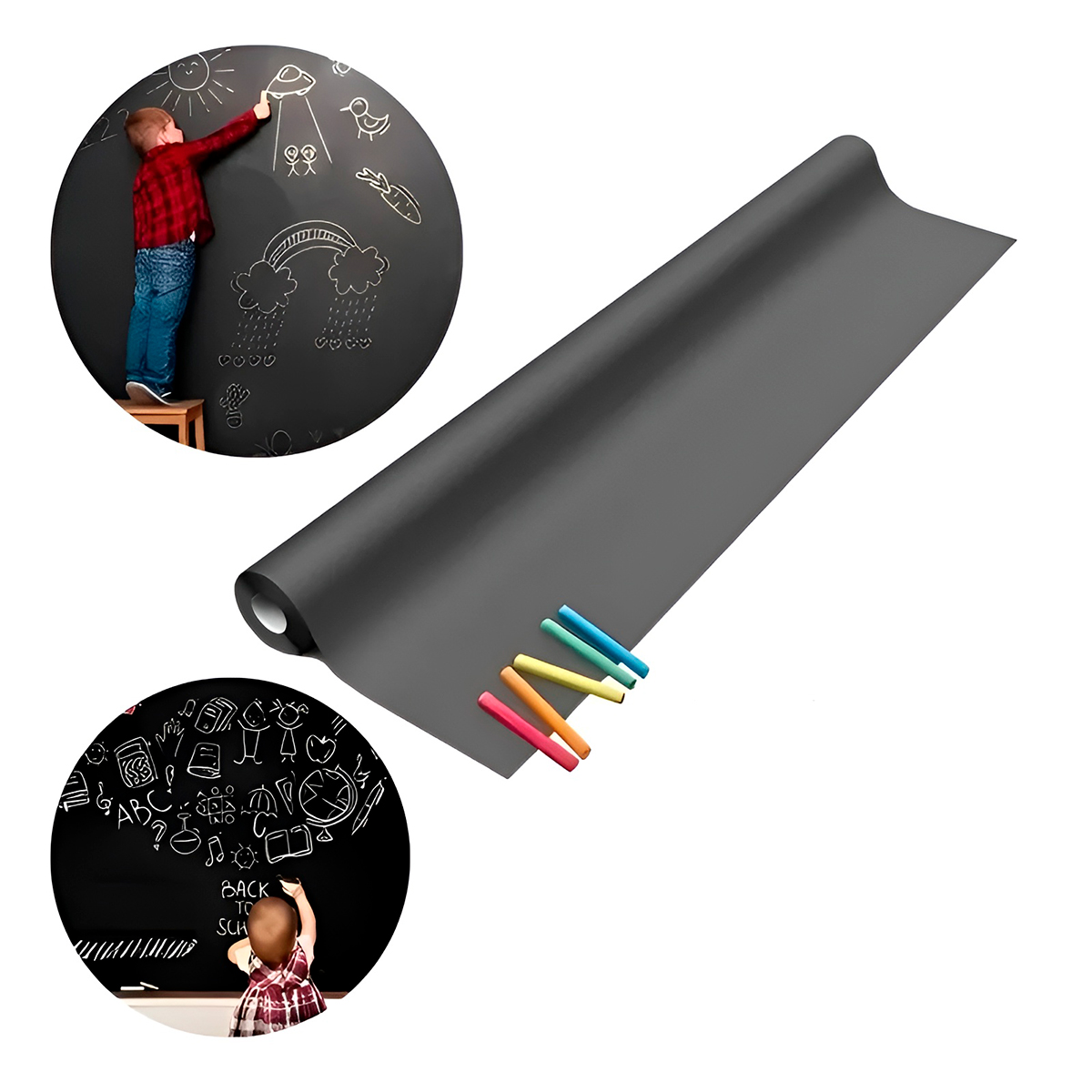 Este adesivo de alta qualidade possui acabamento preto fosco, simulando perfeitamente um quadro negro tradicional, mas com a praticidade de ser aplicado em segundos em qualquer superfície lisa.